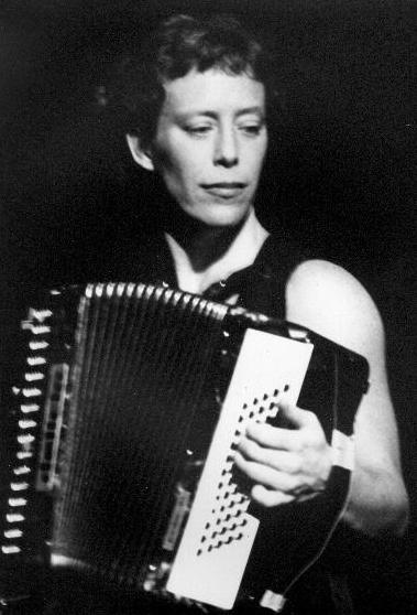 , saxofonistka, harmonikářka, zpěvačka, baskytariska... při vystoupení The Nudes na Deltě.