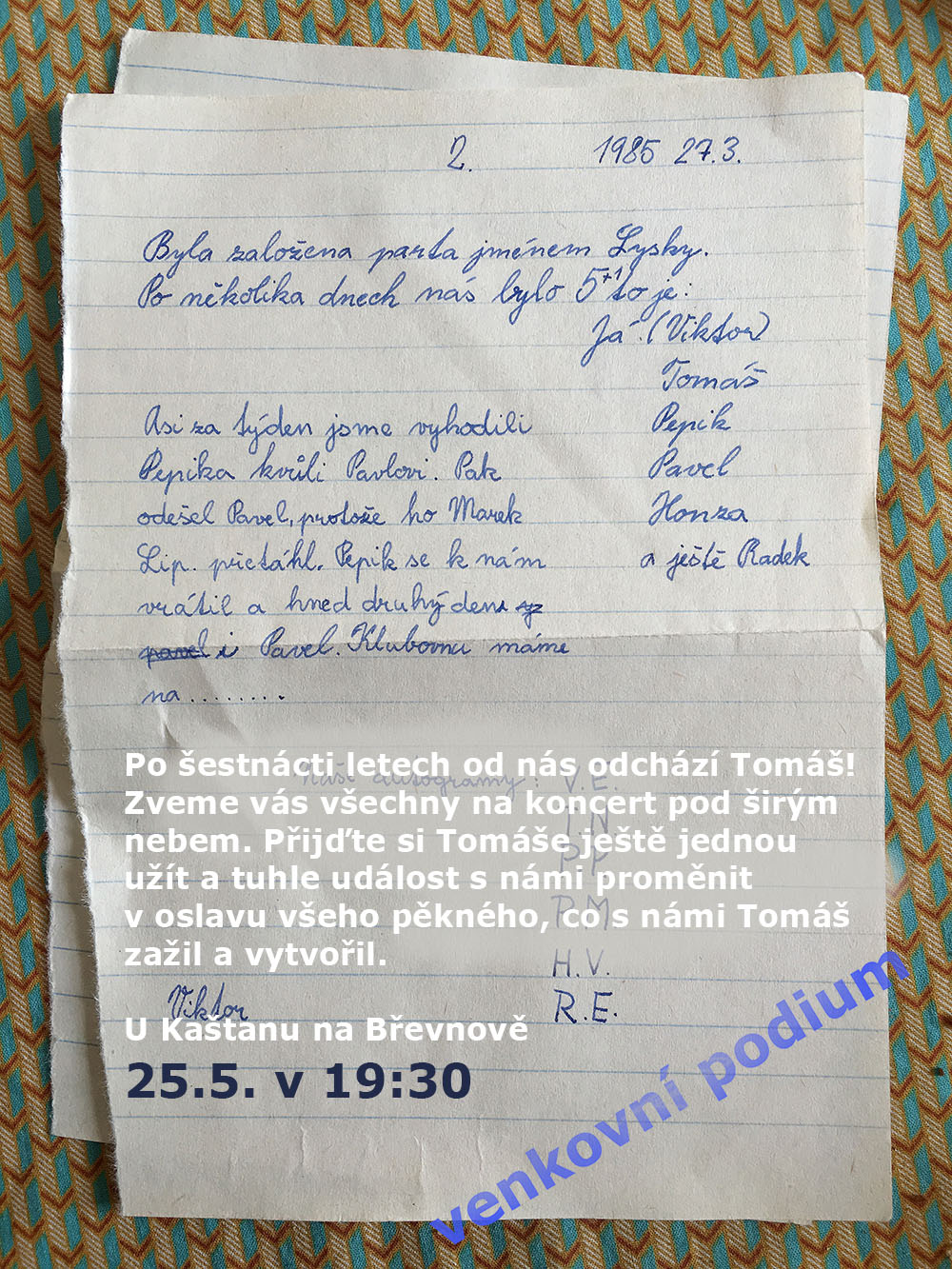 | Momentálně zkoušíme nové písničky. 7.4. bude jejich premiéra v Malostranské besedě, tak se těšíme. |